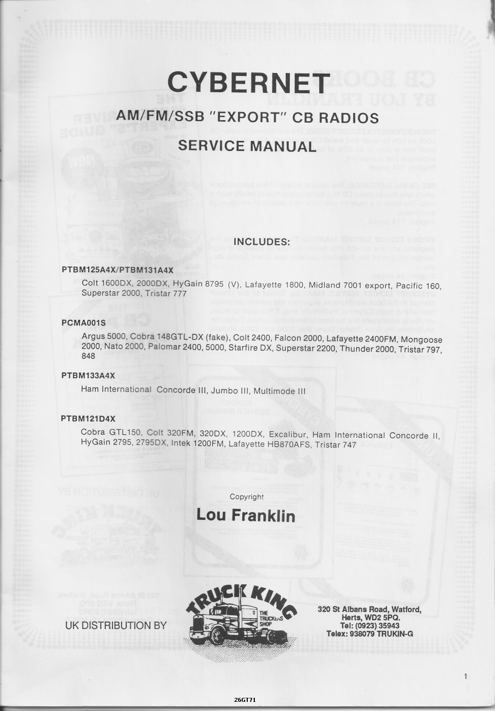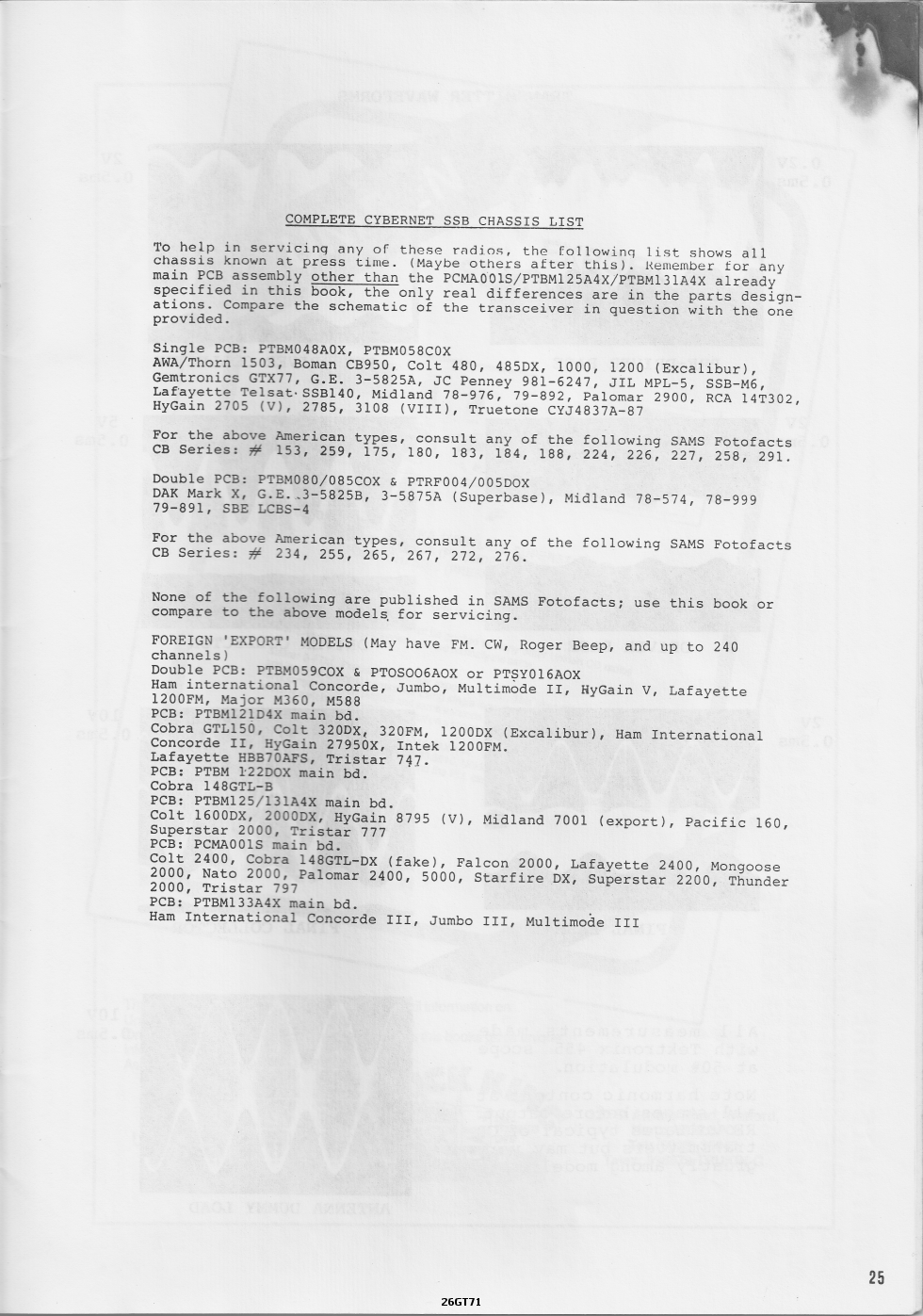Denna service manualen täcker in många modeller från CYBERNET minst 37 Export CB. Jag har haft mycket nytta av denna och hoppas även någon här kommer att få det också!.