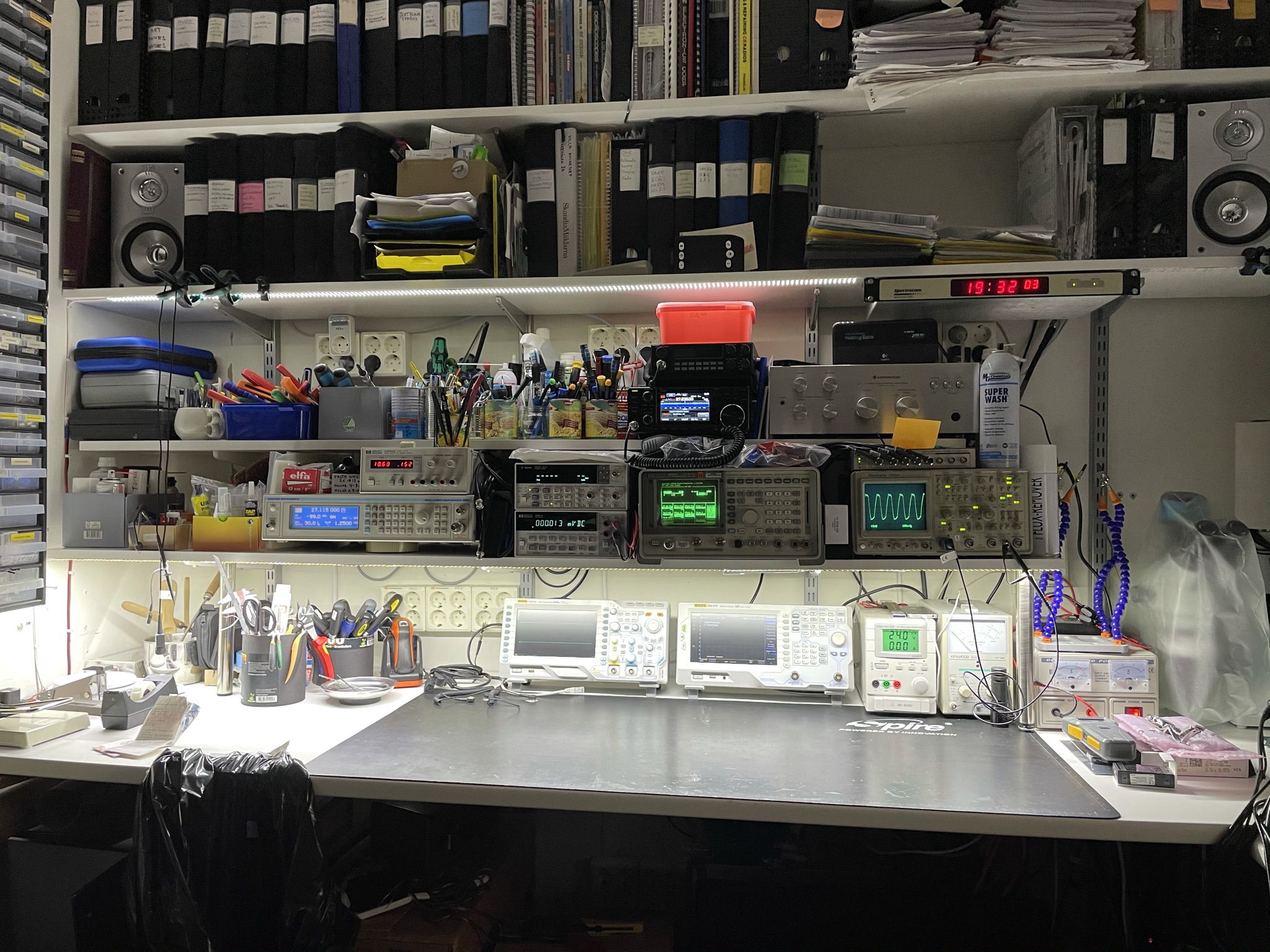 Så här såg mitt "labb" ut innan villan såldes för 2 år sen och jag flyttade till hyreslya medan bygget uppe i Norrland pågick: Notera dock att jag INTE alls är så kunnig på det här som min instrumentpark indikerar....