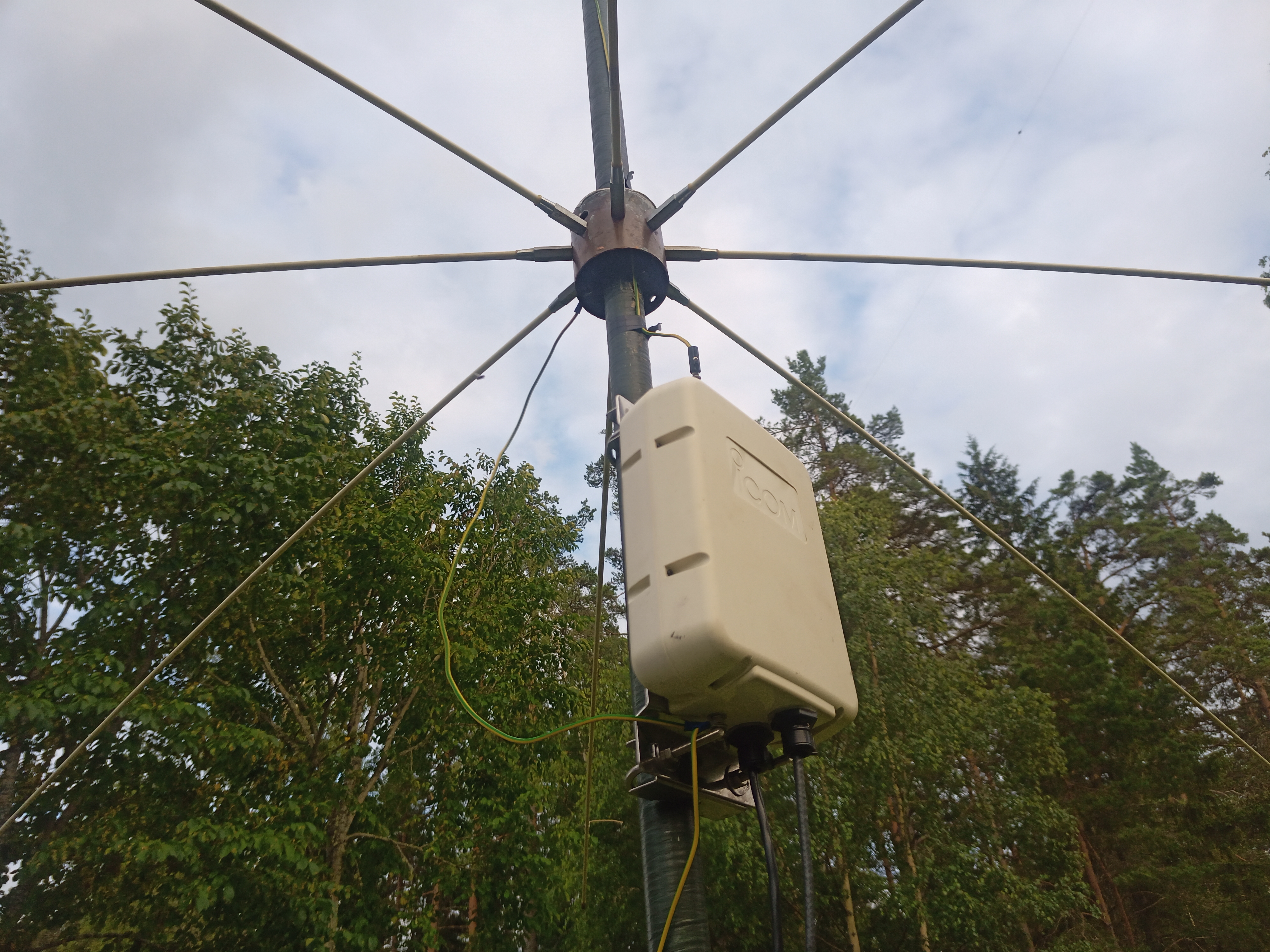 Förra helgen körde jag röjsåg i området runt vertikalen och plockade då bort alla radialer för att komma åt.