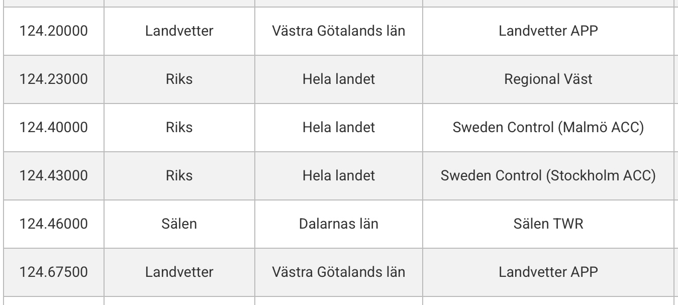 Just nu lyssnar jag på 124,675MHz AM men hör samma trafik även på 124,200MHz