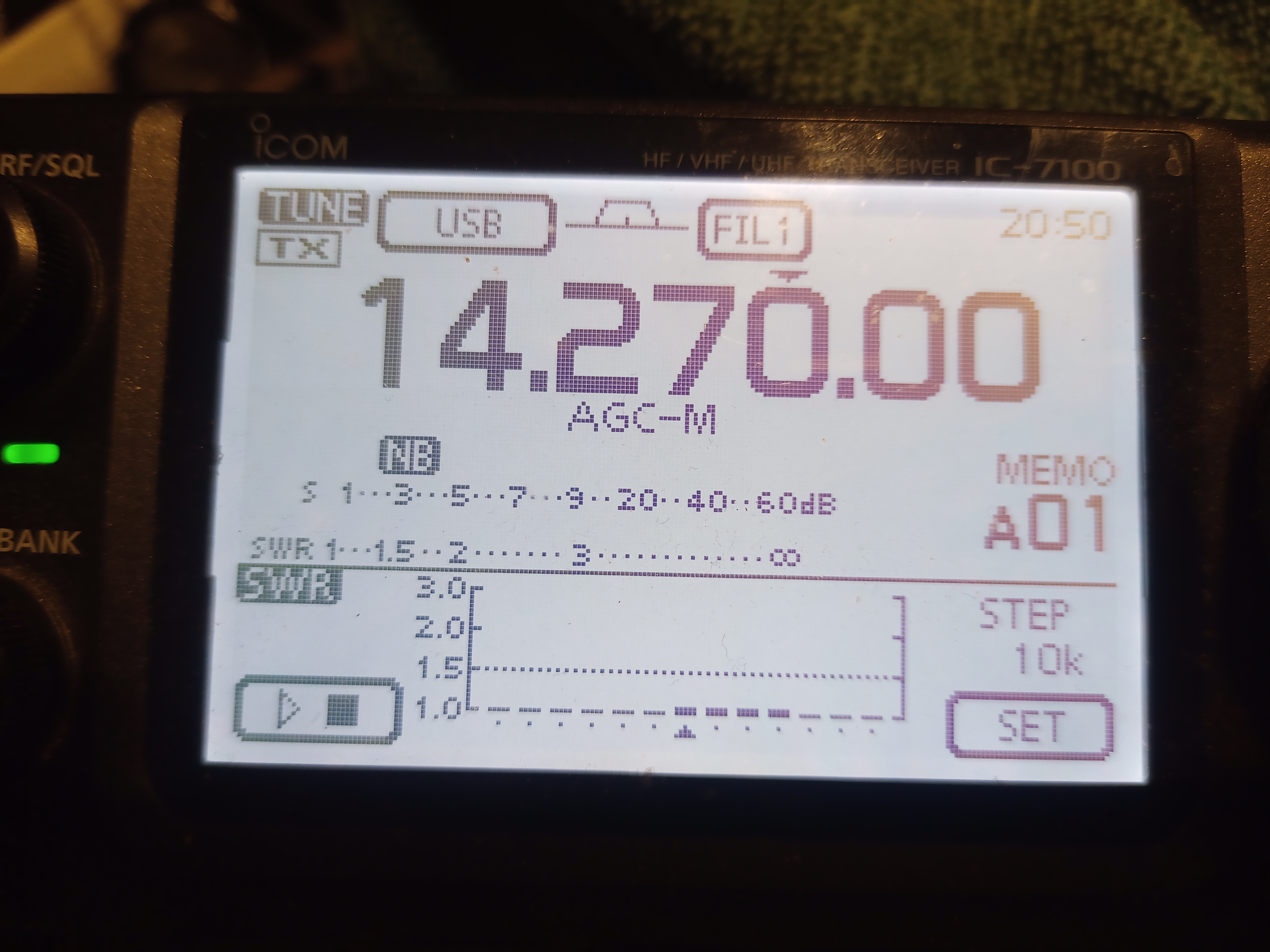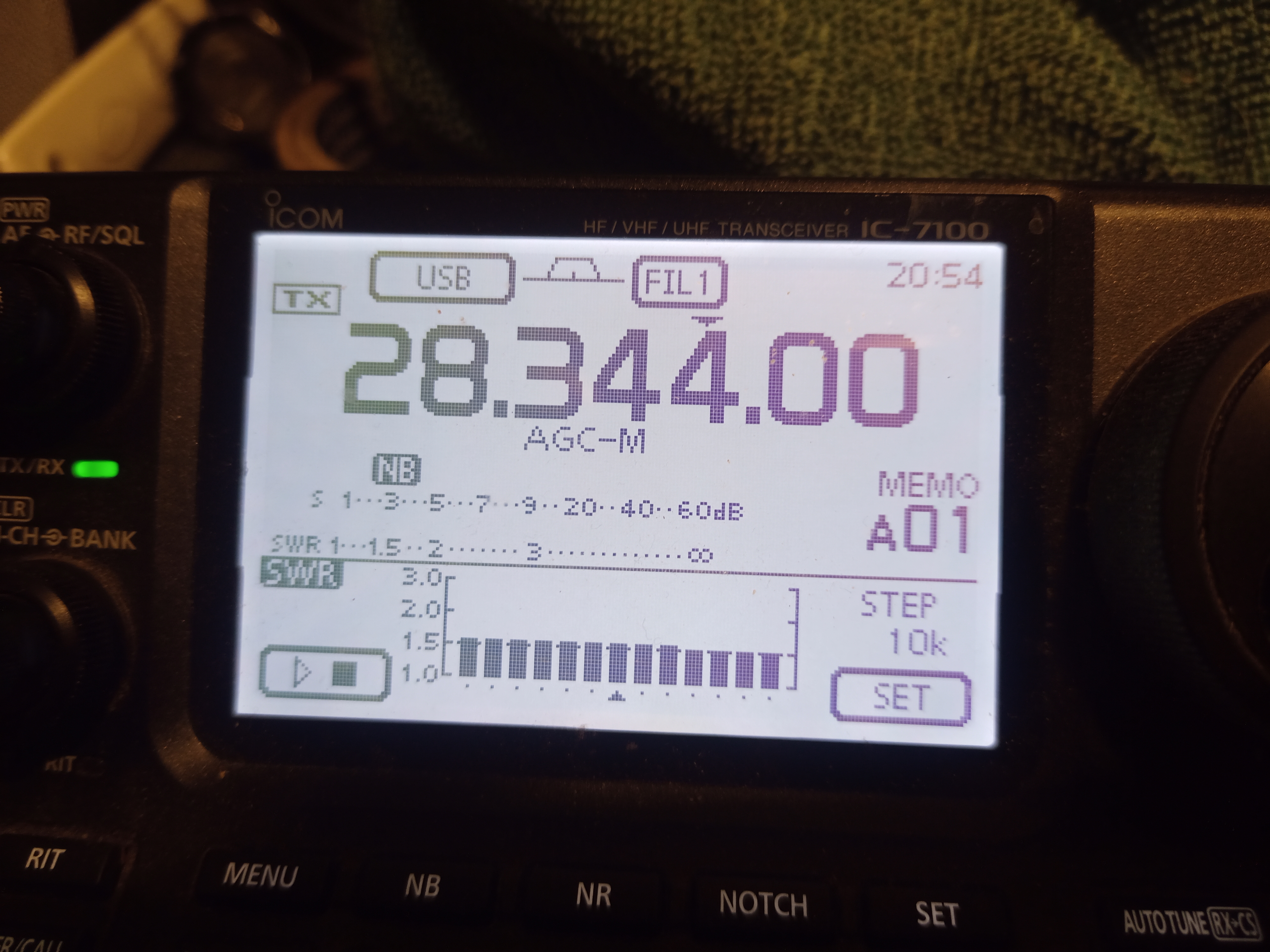 På IC-7100 finns en finess med att kunna få fram en swr graf.