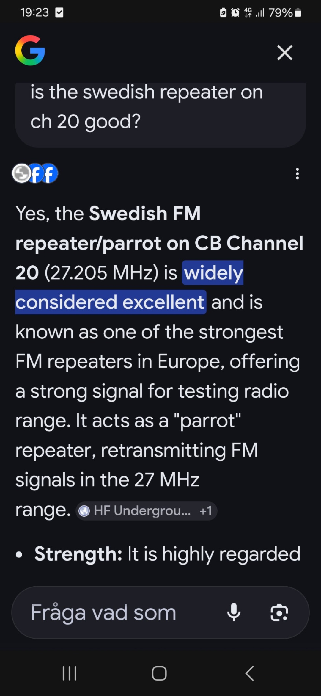 Snabbsökning om repeatern betraktas som bra, gav följande svar: