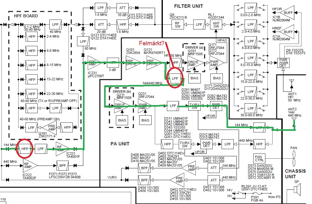 Nu har jag sett så många fel i servicemanualen jag har tillgång till när det gäller IC-706MKIIG så man blir lite skeptisk till vad som stämmer men än så länge är det bara detaljer som är fel så jag får lita på att blockscheman stämmer hyfsat bra i alla fall.