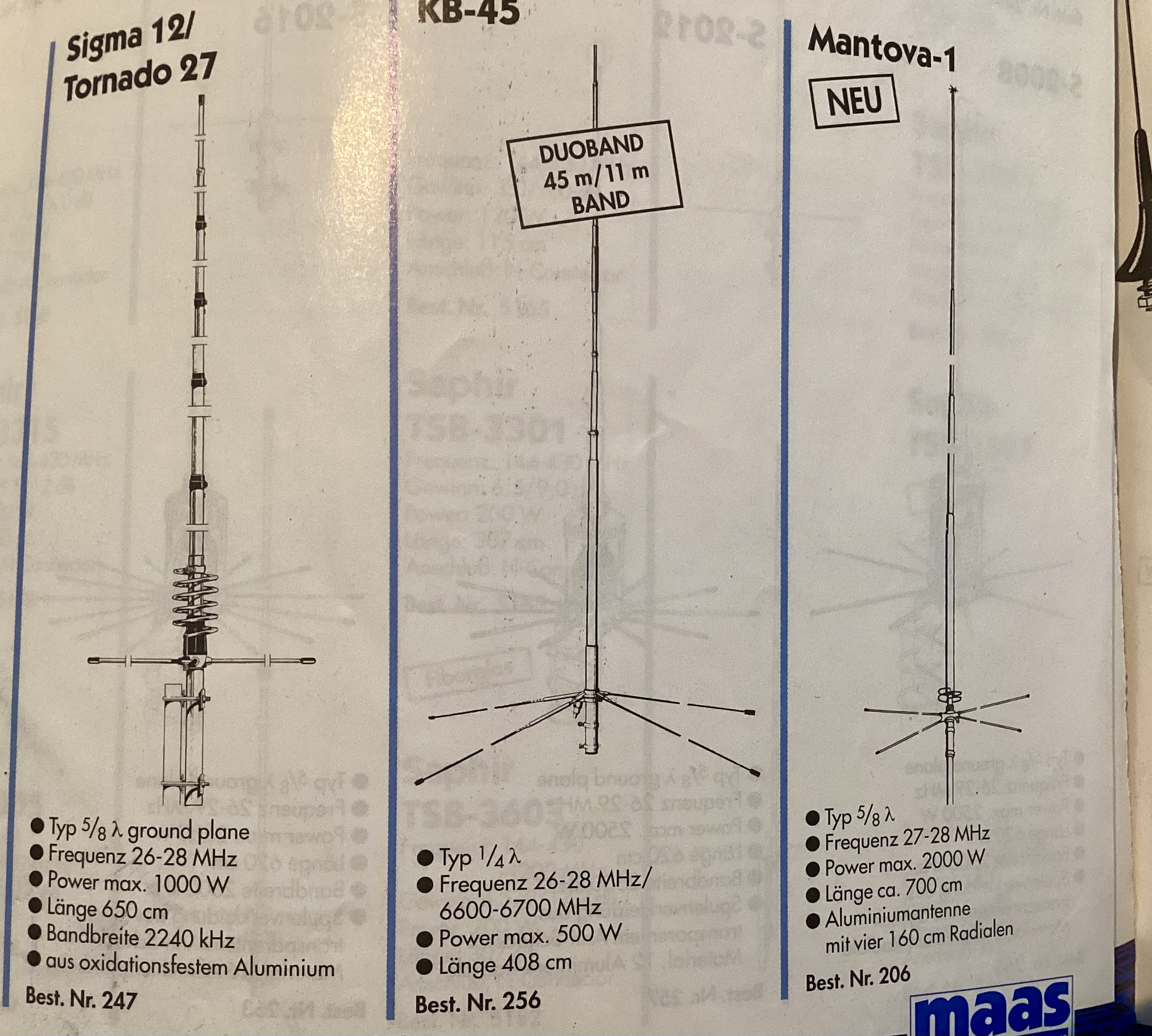 I tyska kataloger förr kunde man läsa om kombinationsantenner för 11/45m’s.